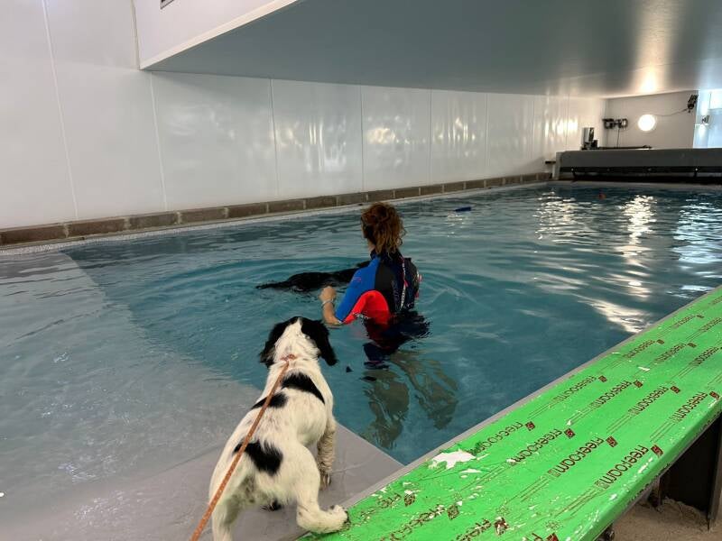 After treating Fergal and Blinder, part of my sponsored team, Gemma Fronda kindly invited us to use their pool!! This is still in development but her team is reaping the benefits of regular swimming sessions for their fitness and it will hopefully be open to the public at some point in the future. We had no intention of Nova joining us, but she was desperate to get in so had her first little swimming lesson! So nice to be back in a pool with the dogs as this is where my career started, many years ago now!! Thank you so much! Amazing perk to sponsoring Gemma and her wonderful dogs